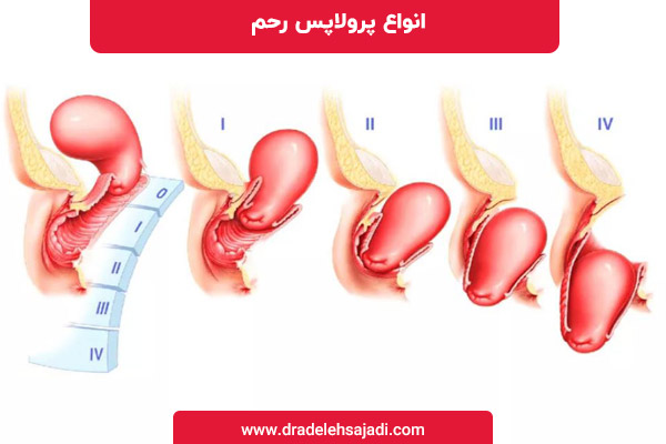 بر حسب شدت بیماری و علائم آن پرولاپس رحم به ۴ درجه تقسیم میشود. قطعاً تشخیص سریعتر و در مراحل ابتداییتر درمان آن را برای افراد راحتتر میکند. به طور کلی مراحل و انواع افتادگی رحم به شکل زیر است: