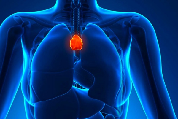 غده تیموس بخشی از سیستم ایمنی بدن را تشکیل میدهد. این غده در قسمت بالایی استخوان قفسه سینه قرار میگیرد. بر اساس تحقیقات با تحریک غده تیموس آنتی بادیهایی تولید میشود که مسیر گیرنده عصبی را مسدود میکند. این غده در ابتدای تولد بسیار بزرگ است؛ اما با افزایش سن اندازه آن کاهش مییابد. در افرادی که به این بیماری مبتلا هستند اندازه غده تیموس آنها بزرگ است.